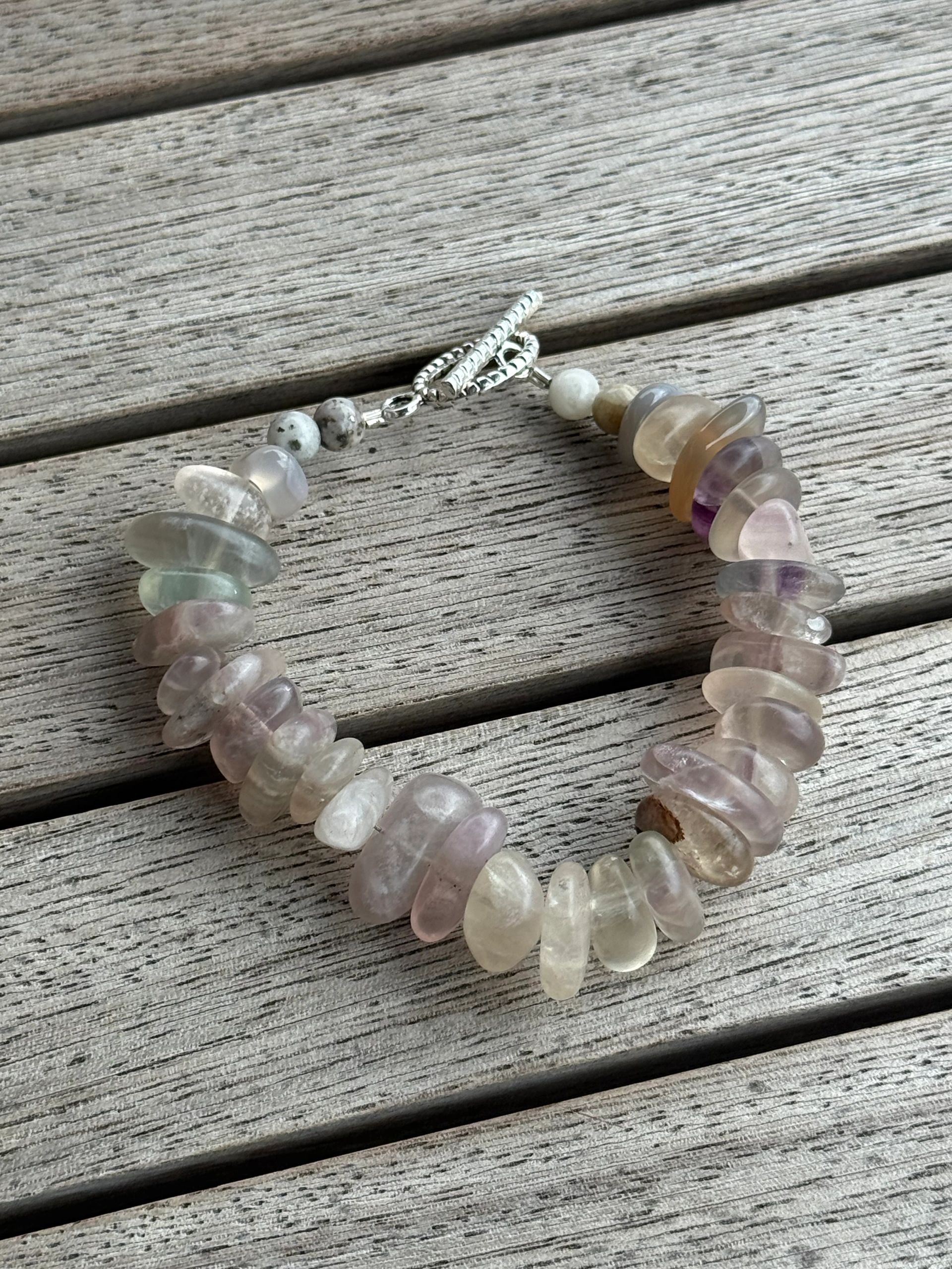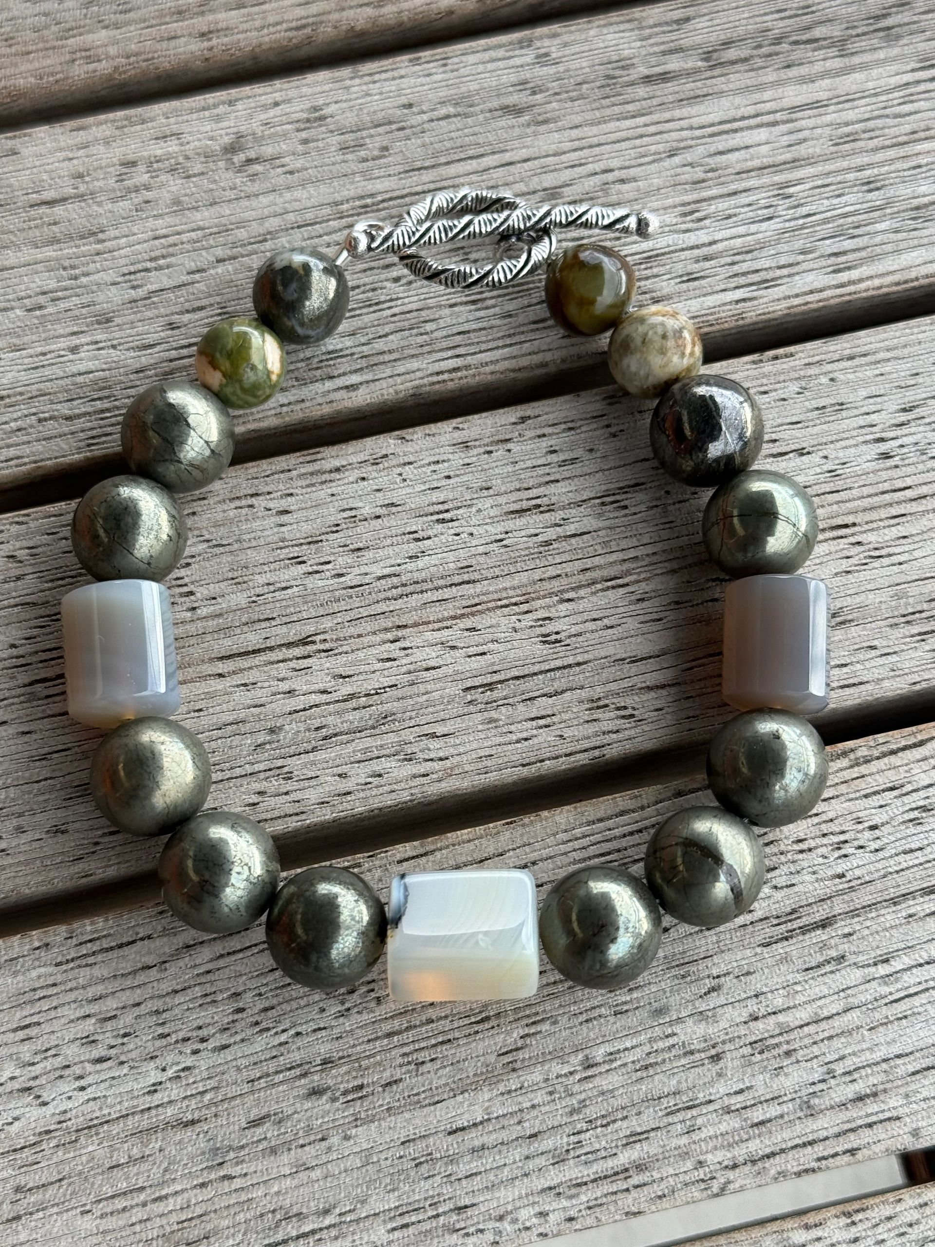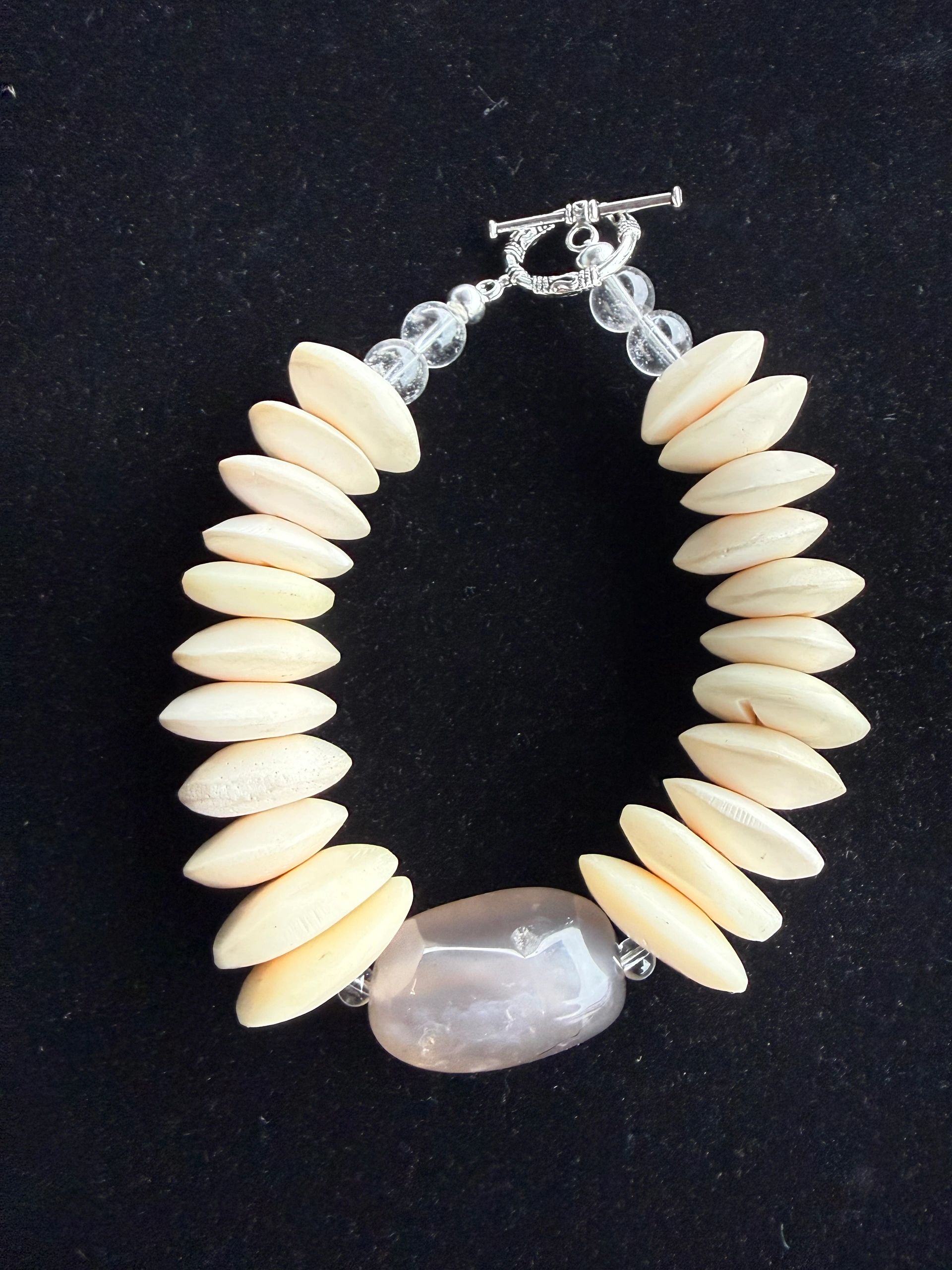 Recycled Cow Bone & Agate w a Hint of Quartz Bracelet
