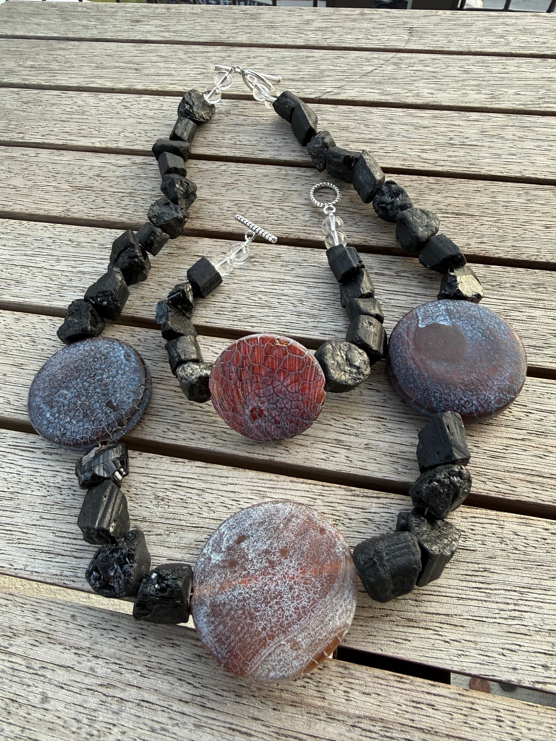 Tourmaline & Carnelian Necklace & Bracelet Set